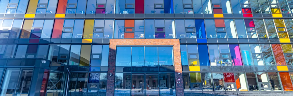 Nizozemsko Barevný školní areál a velká výzva pro sklo