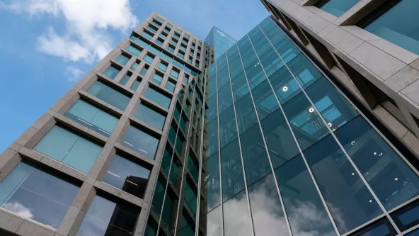 Vzhledem k tomu, že sklo má na všech fasádách prakticky stejnou tloušťku, je výsledkem jednotný vzhled celého exteriéru budovy z hlediska odrazivosti i barvy. I když to samo o sobě bylo dostatečným důvodem pro volbu skla, výběr byl ovlivněn také akustickými charakteristikami a skutečností, že sklo bylo k dispozici i v protipožární verzi, která má stejný vzhled a působí týmž dojmem.