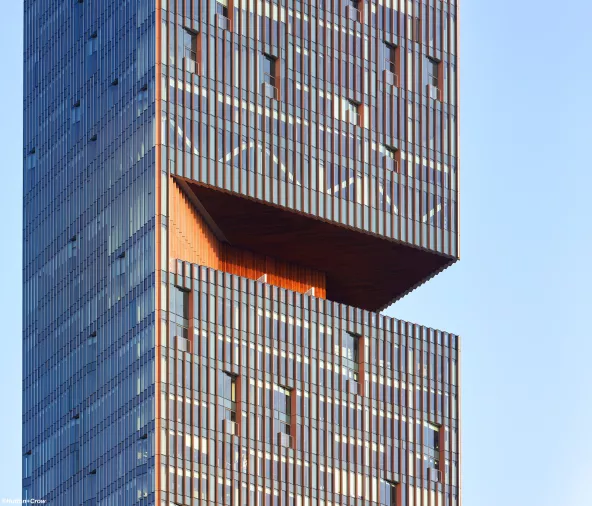 Architektonické studio Skidmore, Owings a Merrill specializující se na výškové budovy se rozhodlo pro fasádu z více než 17 000 m2 skla ipasol Light Grey 60/33, a to díky jeho esteticky přitažlivému šedavému odstínu při pohledu zvenčí, z vnitřku budovy je však sklo naprosto průhledné a neutrální.