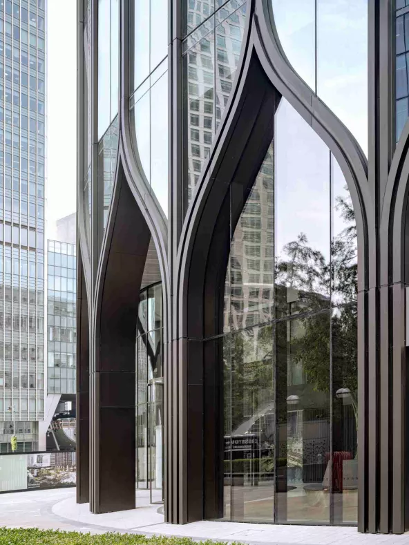Na fasádě bylo instalováno přibližně 14 000 m2 vysoce výkonných izolačních dvojskel s protisluneční ochranou vyrobených společností AGC Interpane Architectural Glass, včetně ipasol Bright White a ipasol Ultraselect 62/29 (kombinace v rámci jednoho izolačního dvojskla) a také Stopray Ultraselect 70/33. Všechny tyto výrobky jsou na extra čirém skle Clearvision s nízkým obsahem železa.