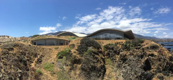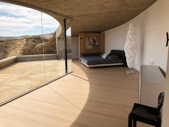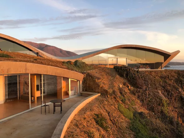 Das erste in diesem Jahr in Ocho Quebradas fertiggestellte Haus, war das des Tokioter Architekten Ryue Nishizawa (西沢 立衛 Nishizawa Ryūe), Geschäftsführer der eigenen Firma Office of Ryue Nishizawa und Mitbegründer von SANAA. Dieses atemberaubende Gebäude ist die perfekte Kombination aus Glas und Beton. Die breite, raumhohe und rahmenlose Verglasung bietet einen herrlichen, vollkommen ungestörten Blick über das Meer und die natürliche Umgebung. Bei der Verglasung handelt es sich um 1212.4 Verbundglas aus Planibel Clearvision, das von AGC Glass Europe geliefert und von Dialum in Chile laminiert wurde. Durch die nahtlose Verbindung zwischen diesem ultraklaren Glas und der geschwungenen Betonkonstruktion fügt sich das ganze Gebäude harmonisch in die natürliche Landschaft ein.