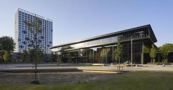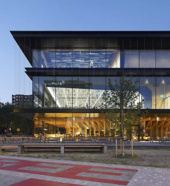 In diesem energieerzeugenden Gebäude befinden sich viele verschiedene Räume für viele verschiedene Arten des Unterrichtens und Studierens. Das ökologischste Gebäude der TU Delft bringt das Ziel eines klimaneutralen Betriebs bis 2030 ein Stück näher.