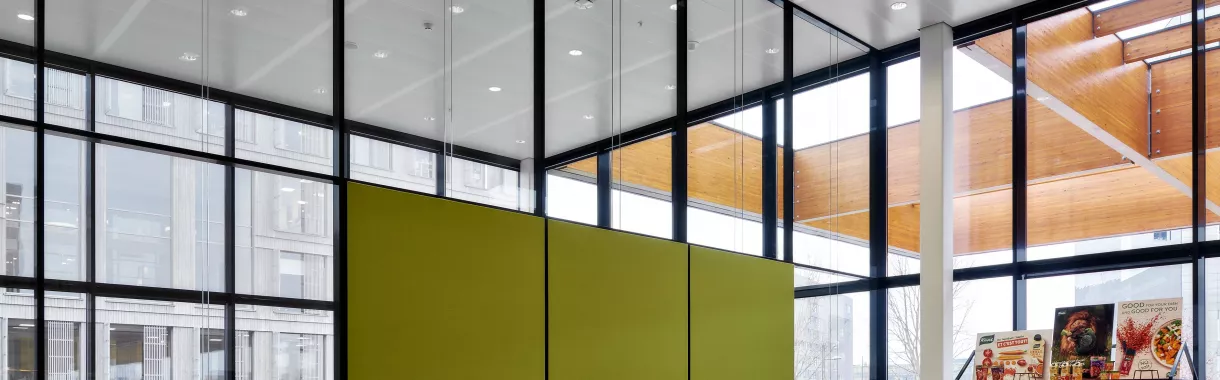 Stratophone offers the same safety protection as Stratobel while delivering high-level acoustic insulation that absorbs sound and blocks out noise. How? The special acoustic PVB layer acts as a barrier that prevents noise from, say, a noisy outdoor environment, from passing through the window into a quiet office in the building. The higher the acoustic insulation rating of the glass, the greater the comfort for occupants – which in turn has a positive impact on health and well-being.
