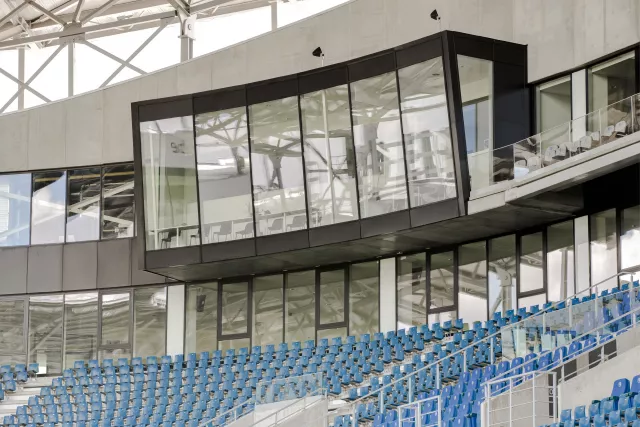 The double silver coating combines outstanding neutral aesthetics, 60% light transmission, very low reflection and high solar protection (solar factor: 33%). It delivers excellent thermal insulation thanks to a Ug-value of 1.0 W/(m².K). This heat-treatable version seamlessly matches the annealed version Stopray Neutral-60/33.
