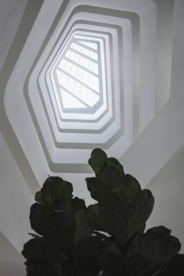Inside, the design follows the principles of neuroarchitecture with a view to creating an optimal working environment. Natural light is carefully controlled and the air is filtered and purified. Expansive views of the outdoor greenery are accessible from every workspace. Every element is designed to stimulate physical and psychological well-being and productivity, with a layout that combines functional rigour with dynamism.