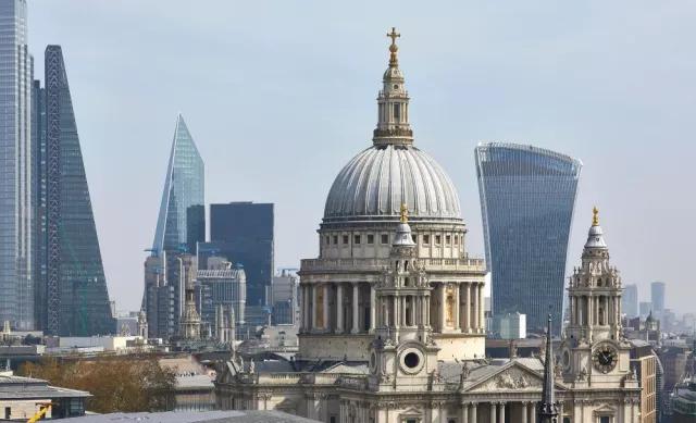 A series of reflective planes standing tall in the City of London