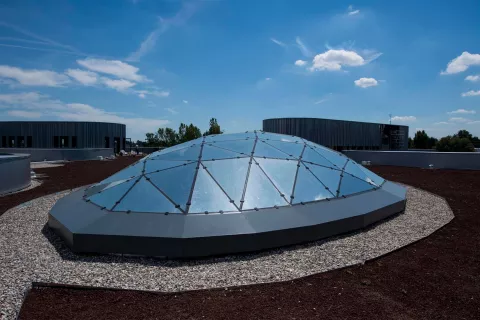 Lacomat is clear Planibel float glass painted on one side with a satin-finish opalescent paint. It is available in two versions: Lacomat Classic presents a diffused opalescent appearance while Lacomat White offers a pronounced opalescent appearance and a whiter look.