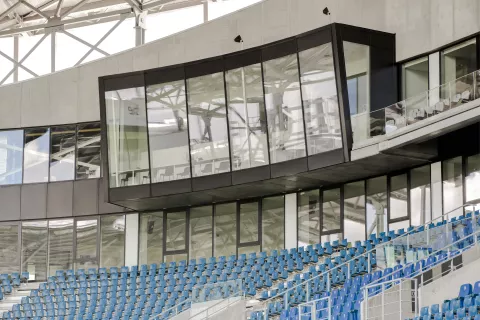 Lacomat is clear Planibel float glass painted on one side with a satin-finish opalescent paint. It is available in two versions: Lacomat Classic presents a diffused opalescent appearance while Lacomat White offers a pronounced opalescent appearance and a whiter look.