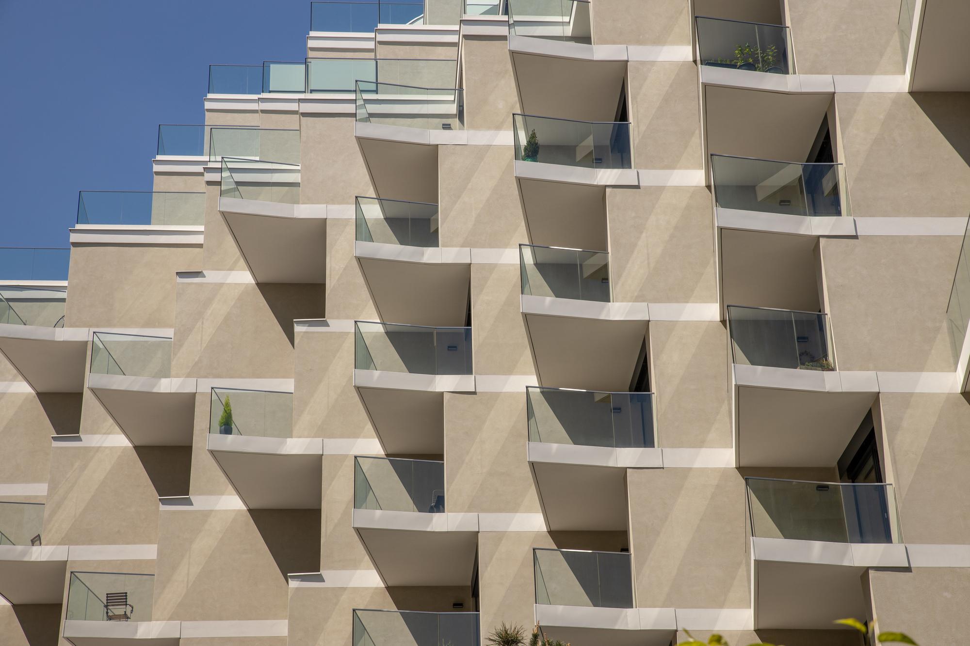 Cada uno de los 138 apartamentos cuenta con un balcón o terraza privada equipada con separaciones de vidrio laminado de seguridad Stratobel 1010.2. Para una mayor privacidad, algunas separaciones utilizan el Stratobel Arctic Snow. En total, se utilizaron 1.350 m² de vidrio laminado de seguridad en todo el proyecto, garantizando que todos los residentes puedan disfrutar de su espacio exterior con un nivel adicional de seguridad y elegancia.