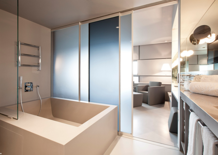 Matelux peut être transformé comme un verre float ordinaire ; son aspect lisse et satiné en fait un matériau de choix pour un impact visuel accru dans les espaces intérieurs et extérieurs.