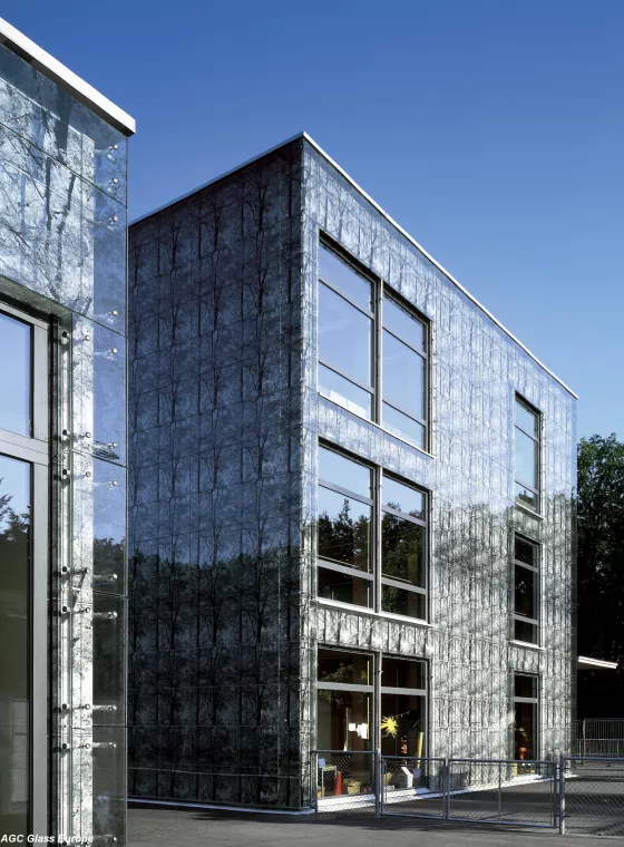 Le verre sérigraphié Artlite Matt comporte une face recouverte d’émail mat ; désormais, des reflets naturels mats peuvent donc être intégrés aux éléments du graphisme.