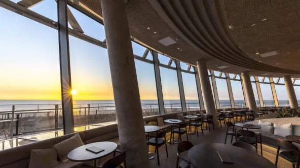 « L’architecture fusionne avec le paysage », précise Leo ten Wolde. « Elle est contemporaine, sans effets faciles et sans clinquant. La salle d’événements, le restaurant et le casino sont tapies dans la dune, sans ostentation mais en ouvrant des perspectives spectaculaires sur la mer grâce à leur façade tout en transparence – un atout où un verre de grande qualité a un rôle de premier plan à jouer. » Les concepteurs du projet ont prescrit le verre isolant AGC iplus 1.0, disponible dans une large gamme de configurations répondant chacune à des exigences spécifiques en matière d’esthétique et de fonctionnalité – des exigences qui n’englobent pas seulement des caractéristiques d’aspect et d’isolation, mais aussi de transmission lumineuse, d’isolation phonique, de réflexion et de résistance aux charges de vent. Les panneaux de verre font appel à différentes compositions, telles que 10(15)88.2 et 1212.2(15)#88.2, ayant une valeur de transmission lumineuse (TL) de 69 et un facteur solaire (coefficient g) de 46.