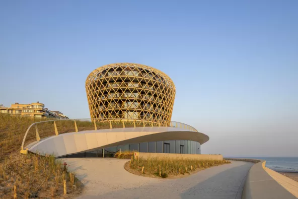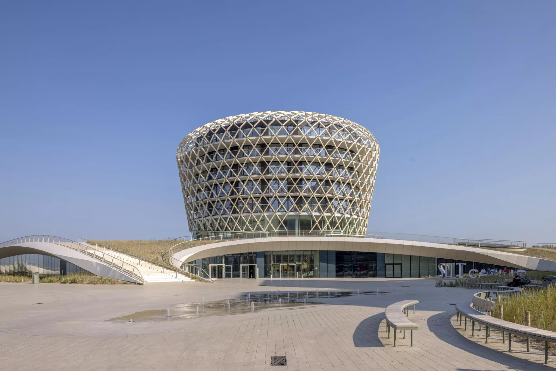 Conçu par le cabinet d’architecture ZJA et les architectes paysagers DELVA, en collaboration avec les bureaux d’études OZ et Bureau Bouwtechniek, le Silt traduit un attachement et un respect profonds pour la mer et les dunes. Ce bâtiment remarquable combine accueil, viabilité, habitabilité et résilience côtière : la digue de mer sur laquelle il repose est désormais capable de résister à des tempêtes millénaires. Sa conception ingénieuse a permis de minimiser la consommation d’énergie et de matériaux pendant la phase de construction, mais aussi d’en assurer la durabilité par des processus de production plus efficaces et un recours extensif à des matériaux recyclés.