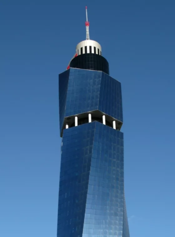 Vetro a controllo solare altamente riflettente con piacevoli riflessi ambra in posizione 1. In posizione 2, il vetro rivestito mostra un’elegante tonalità bronzo grazie alla base in vetro color bronzo.