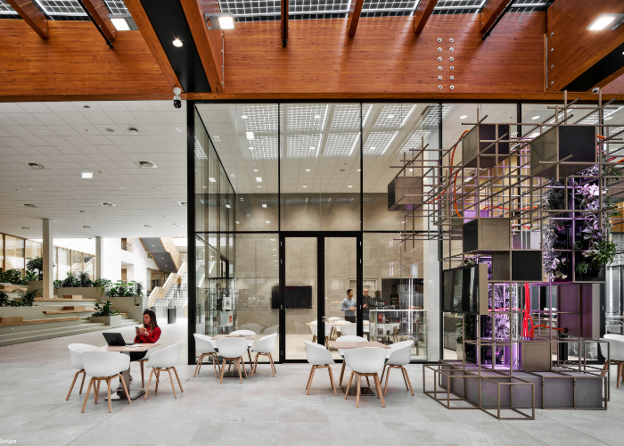 Stadsvernieuwing op zijn mooist: een prachtig nieuw bedrijvencomplex gebouwd op een herontwikkeld industrieterrein