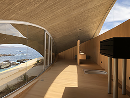 De eerste huizen in Ocho Quebradas zijn dit jaar opgeleverd door architect Ryue Nishizawa (西沢 立衛 Nishizawa Ryūe), uit Tokio, eigenaar-directeur van Office of Ryue Nishizawa en medeoprichter van SANAA. Dit adembenemende project is een perfecte combinatie van beton en glas. De brede kozijnloze ramen lopen van de vloer tot aan het plafond en bieden daardoor een magnifiek ononderbroken uitzicht over de oceaan en de omringende natuur. De ramen zijn gemaakt van gelaagd 12-12.4 Planibel Clearvision-glas van AGC Glass Europe, gelamineerd door Dialum in Chili. Dit ultra-heldere glas laat zich naadloos combineren met de golvende betonconstructie, waardoor het hele gebouw op harmonieuze wijze opgaat in het landschap.